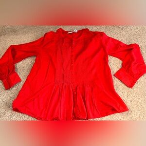 Bright red blouse with button details. Long sleeves and elegant design. Bin 45