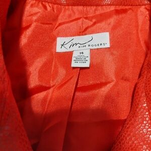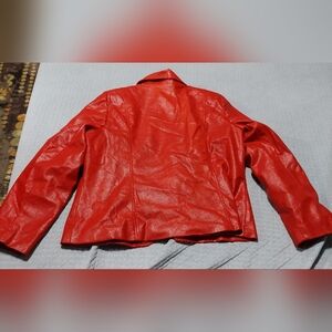 Bold red leather jacket with sleek design. Perfect for adding a pop of color.