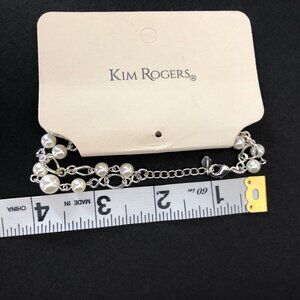 Kim Rogers White Pearl Front Silver Tone Necklace With 2 Strand Pearl Bracelet