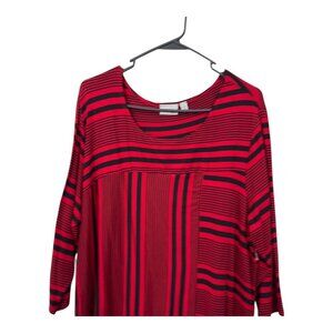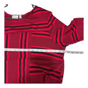Kim Rogers Woman SZ 2X Red & Black Striped 3/4 Sleeve Tunic Top Asimetric hem