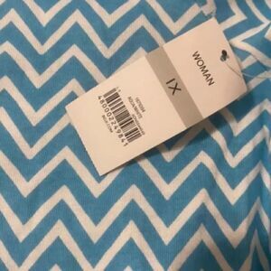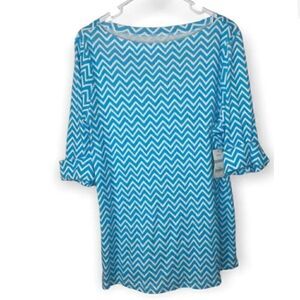 Kim Rogers Woman's XL Aqua And White Chevron Cuff Shirt Sleeve Hardware NWT
