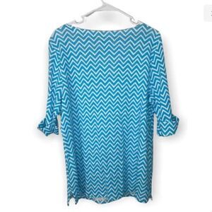 Kim Rogers Woman's XL Aqua And White Chevron Cuff Shirt Sleeve Hardware NWT