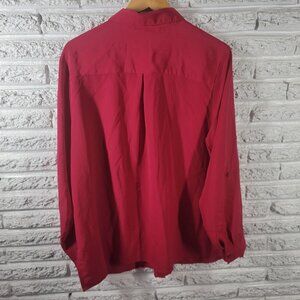 Kim Rogers Women Top 3X Plus Roll Tab Sleeve Red Pockets Lightweight RED16E