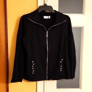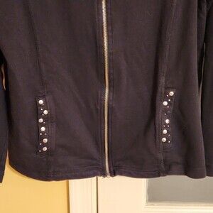 Kim Roger's Women's Black Zip-Up Jacket w/ Bejeweled Pockets Size PM