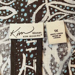 Kim Rogers Womens Blazer 1X Multicolor Floral Collared 3/4 Sleeves Linen