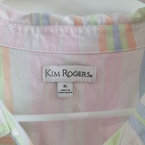 Kim Rogers Womens Button Up Top Size XL Linen Striped Coastal Grandma Beach