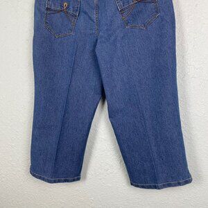 Kim Rogers Women’s Capri Jeans Size 12 Blue Denim Medium Wash Embroidered Pocket