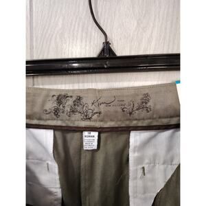 The Kim Rogers Women's Cotton Shannon Capri Straight Leg Pants in size 18 offer a comfortable and stylish option for various occasions. Made of a cotton and spandex blend, these army green pants feature a zip and button closure with a flat front and a comfort band at the waist. The lightweight fabric and straight leg design make them suitable for year-round wear, while their versatile style can be dressed up for parties or worn casually. Perfect for adding a touch of comfort and sophistication to your wardrobe.