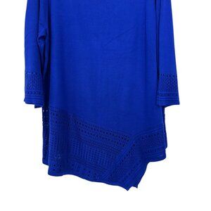 Kim Rogers Womens Curvy SZ 1X Blue 3/4 Sleeve Knit Tunic Top With Crochet Hem