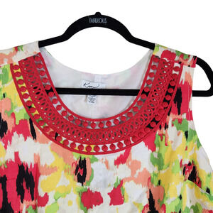 Kim Rogers Womens Dress 12 100% Linen Watercolor Floral Sleeveless Knee Length