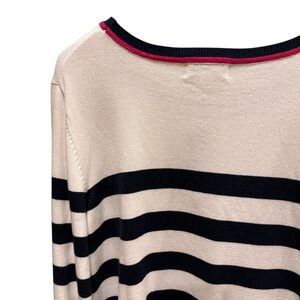 This Kim Rogers Intarsia Sweater is a perfect addition to your wardrobe. The blue and white striped pattern, along with the sequin bow accent, makes it a stylish and unique piece. The pullover style and crew neckline provide a comfortable fit, while the long sleeves make it suitable for travel, casual or workwear occasions.