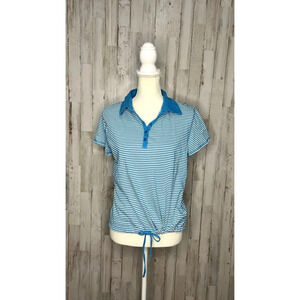 Kim Rogers Women's Large Blue Striped Polo Shirt w/ Drawstring Hem