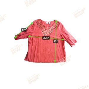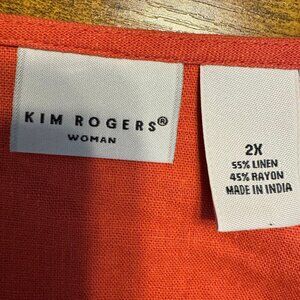 Kim Rogers Womens Linen Blend Tunic Top Size 2x Embroidered Oversized Coastal