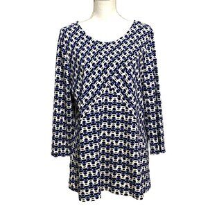 Kim Rogers Womens Pullover Top XL Op Art Boho Geometric Hypnotic Chain Print