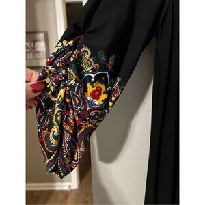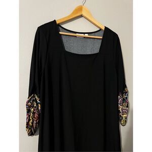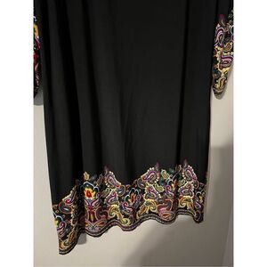 Kim Rogers Women’s Size Petite Large Sheath Dress Black Multicolor Ruched Sleeve