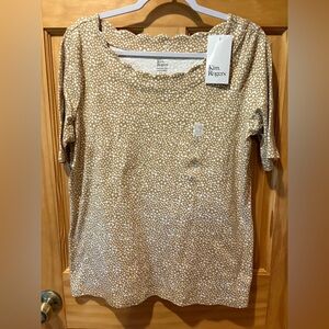 Kim Rogers Women's Tan/white cotton short sleeve scalloped neck top size M NWT