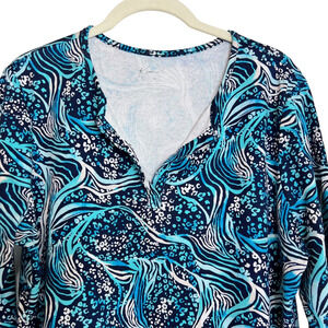 Kim Rogers Women's Tee Large Blue Abstract Print 100% Cotton 3/4 Length Sleeves