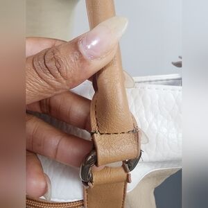 This stylish tote bag features a sophisticated two-tone design in cream and tan. Perfect for any occasion, it combines elegance with practicality. 100% polyurethane. made in Cambodia. RN#108833 Condition: Fair condition. The purse is great for an upcycle. does have severe wear. there are rips, pulls, stitching becoming undone, fabric peeling. *Same day or next day shipping! *Fast expert seller! BUNDLE your items and pay only once for shipping. Open to offers. Thanks for visiting our closet.