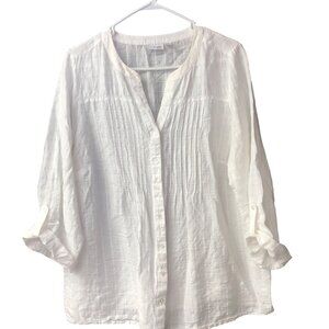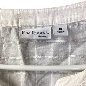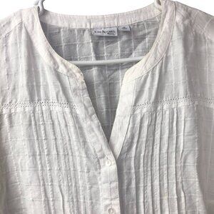 Kim Rogers Womens White Button-Down Textured Blouse WiPintuck Details 3/4 Sleeve
