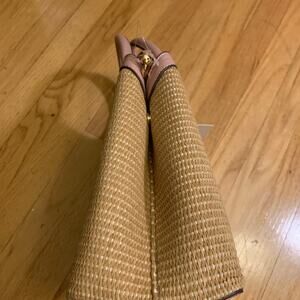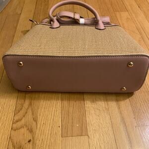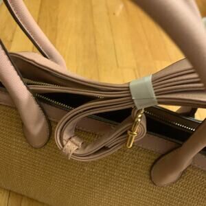 Updated with a zippered middle pouch, this chic satchel from Kim Rogers® is made out of a straw for a natural touch.
