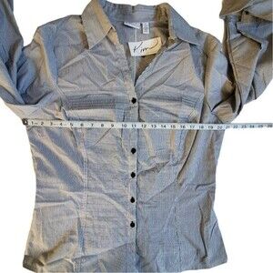 Brand: Kim Rogers. Occasion: Career. Size Type: Regular. Size (Women's): XL. Material: 65% cotton 30% polyester 5% spandex. Neckline: Collared. Style: PT81J7LS1. Sleeve Length: 3/4 sleeve. Color: Black. White. Pattern: Striped. Features: Button cuff on the sleeves. Collared. Gives a nice feminine shape. Button closure on front.