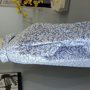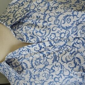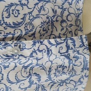 Kim Roger's button-down casual blouse blue and white print. Large, cotto…