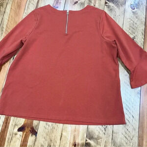Kim Rogers shirt orange, plus sized,flared 3/4 sleeve, exposed zip back closure