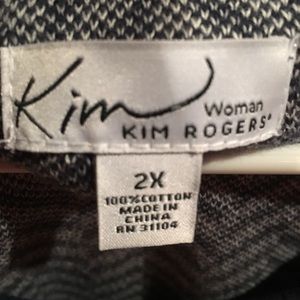 Kim Rogers size 2X navy & white patterned sweater! Super cute! It has a V neck and is NWOT!! I have a black one in the same pattern that I posted, as I couldn’t wear either because they were bought for a trip and then it was canceled!