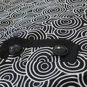 Funky 60s/70s mod swing dress. Black and white graphic. Great for casual or dressing up. Pop it with colorful pumps and a fun handbag.