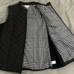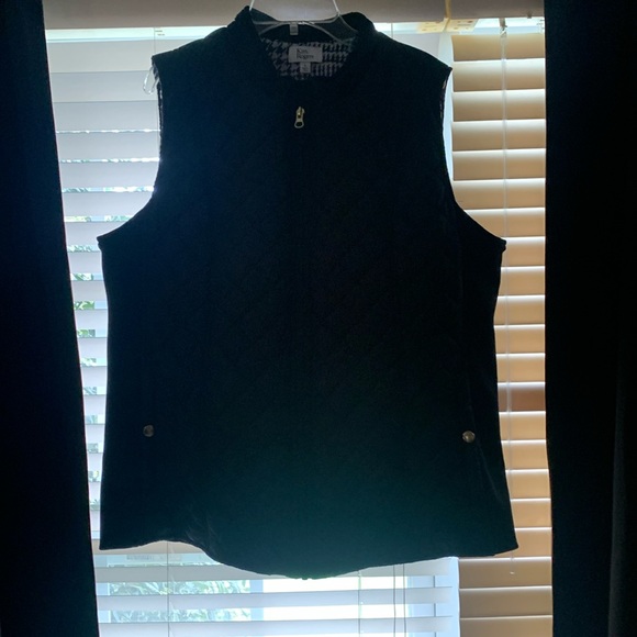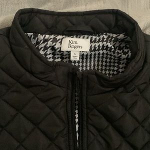 Size large, Kim Rogers vest. Black with houndstooth inside. Gold buttons and zipper. Diamond stitched front and back with stretchy sides for comfort. Never worn.