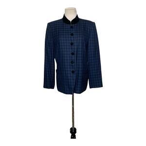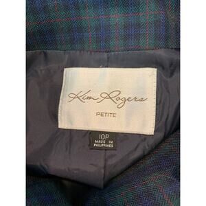 Kim Rogers vintage blue green plaid six button blazer size 10P