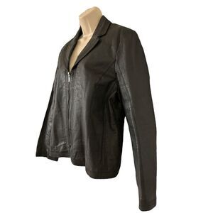 Kim Rogers Black Leather Jacket Fully Lined Pockets Full Zip Size Large.
