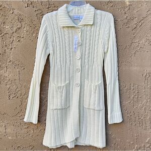 Kim Rogers Chunky Cable Knit Button Up Ivory Cardigan Sweater
