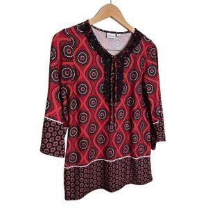 Kim Rogers Tunic Blouse Womens Red/Black Floral Pattern Size Small
