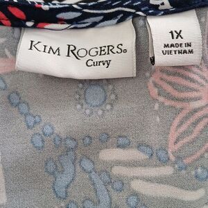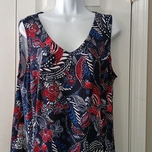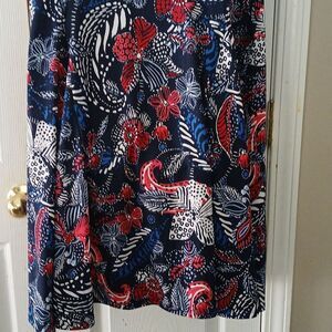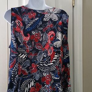 Kim Rogers blue red white floral print sleeveless midi dress Sz 1X NWOT