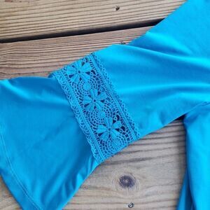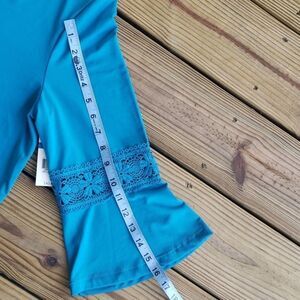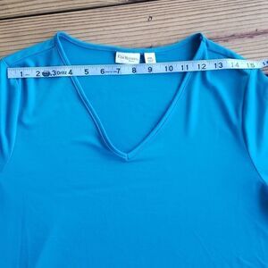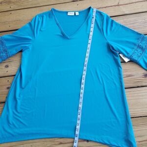 Kim Rogers women's teal blue tunic top with flared 3/4 sleeves ,lx petite