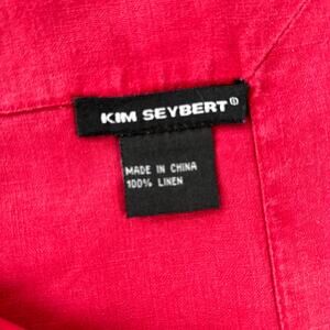 Kim Seybert Set of 12 Red Linen Napkins with Gold Running Stitch