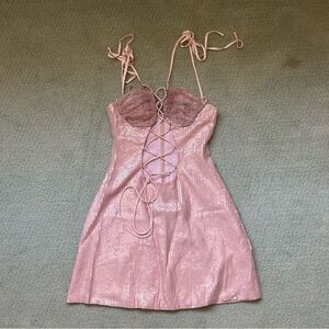 Kim Shiu Women’s Pink Lace Up Pailette Mini Dress Sequin Size Small