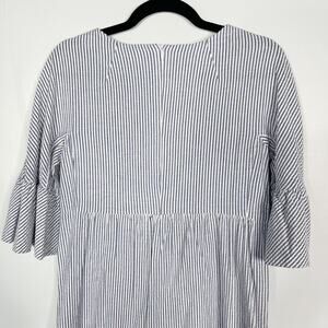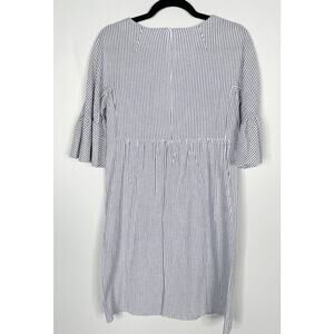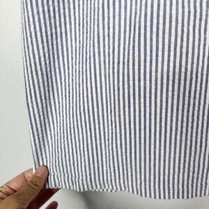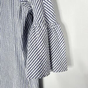 Kim and Proper XXS Blue White Seersucker Striped Short Bell Sleeve Dress Cotton