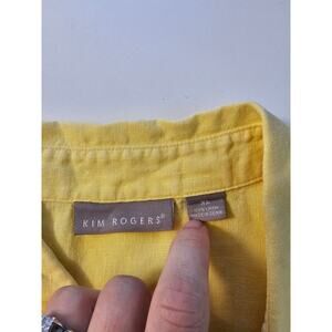 Kim rogers 100% linen short sleeve button up back bottom slit summer casual XL ^