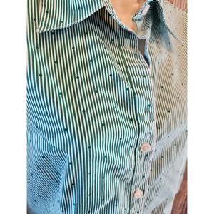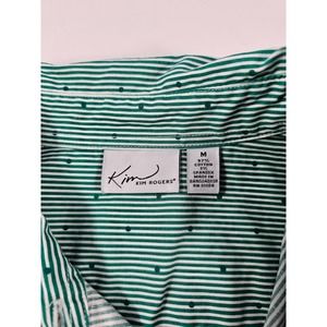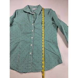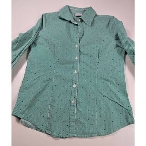 Kim rogers striped polka dot green stretch career blouse 3/4 sleeve M ^