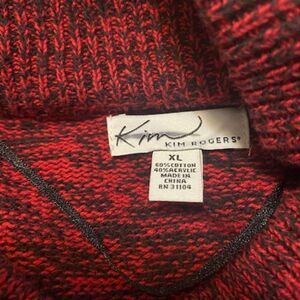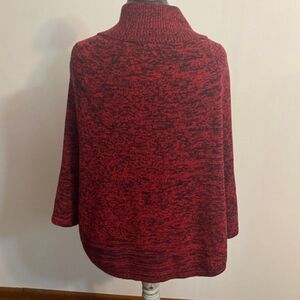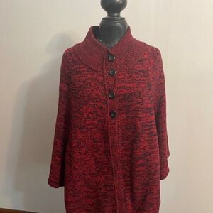 Kim Rogers Black Red Partial button front wrap cape, size XL (60% Cotton, 40% Acrylic)