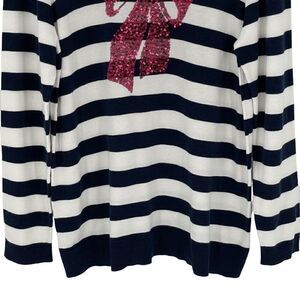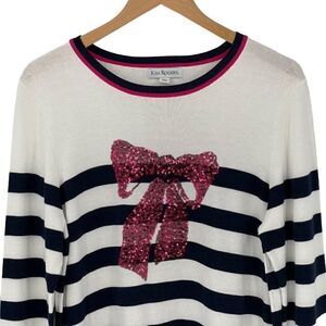 Kim Rogers Intarsia Stripe Crewneck Sweater Sequin Bow Graphic White Blue Large