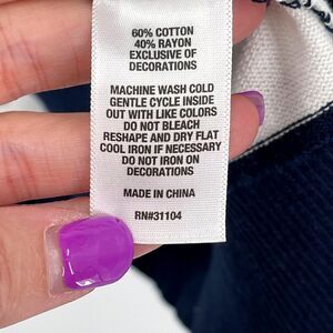 • Crewneck. Long sleeves. Sequin bow graphic. Stripe pattern. Color: white, blue, pink. Fabric: 60% Cotton, 40% Rayon.
