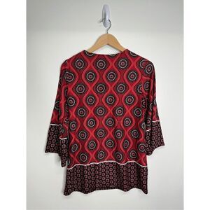 Kim Rogers Tunic Blouse Womens Red/Black Floral Pattern Size Small