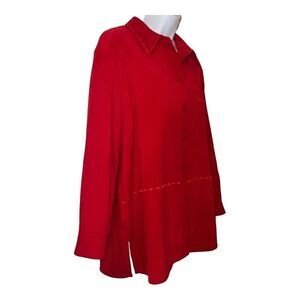 Kim Rogers Women's Beautiful L Red PETITE Polyester Blend Button Down Top