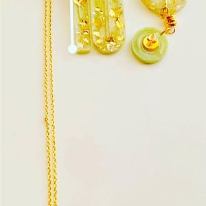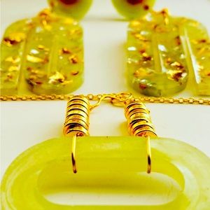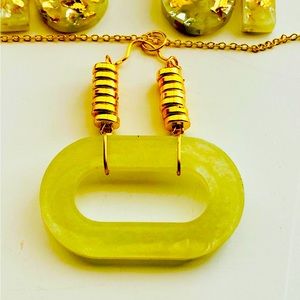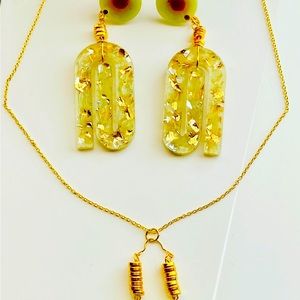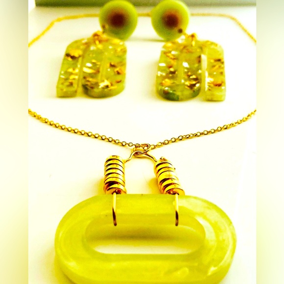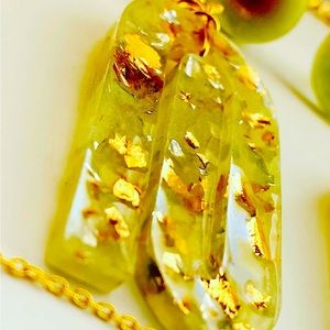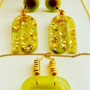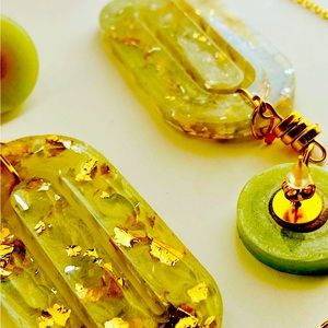 Handmade resin set - green apple pigment with silver and gold flakes for a glam and sophisticated look. Very lightweight.
