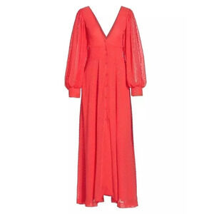 Crafted of jacquard, Kimberly Goldson's Lesli maxi dress is styled with a plunging V-neck and -back, long blouson sleeves, and a button-front closure.