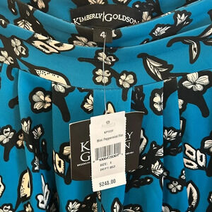 Kimberly Goldson Women’s 4 Mini Peppermint Floral Highwaisted Pleat Front NWT Pants. These Highwaisted pleat front pants feature a bold floral print and a relaxed tapered leg. Concealed side zipper. Side seam pockets. Dry clean.