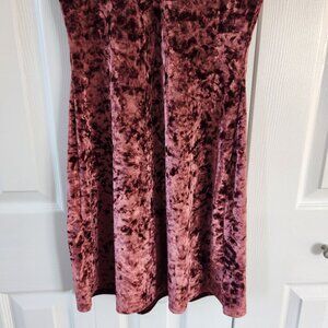 This dress is by Kimchi Blue. It is a pink/red/purple color. It is a velvet-like fabric. It is sleeveless and has a v-neck collared neckline. It is in excellent pre-owned condition with no holes, rips or stains. I believe it to be altered (not by me but by previous owner) due to raw cuts at the sleeves and neckline. Bundle with other items in my closet to get the most out of shipping!